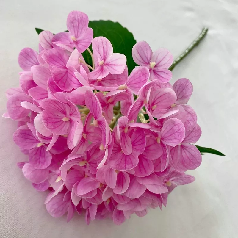 22 цвята Тази хортензия истински допирни изкуствени цветя се предлага в 22 цвята, обхващайки повечето ежедневни нужди за декориране. Истинско докосване Този продукт е изработен от мека каучук с ясна текстура и меко, удобно усещане. Височина: 45см Този истински допир изкуствено цвете стои 45 см висок и разполага с две зелени листа, което го прави подходящ за вази, централни части и други. Ниска цена Цветната глава е с диаметър 15 см и има 72 венчелистчета. Цената е приблизително $ 0,80-$ 1,20. Предлагат се големи количества. Нисък MOQ Този продукт е бестселър и е на склад целогодишно. Минималната поръчка е 1 парче. Просто е невероятно!